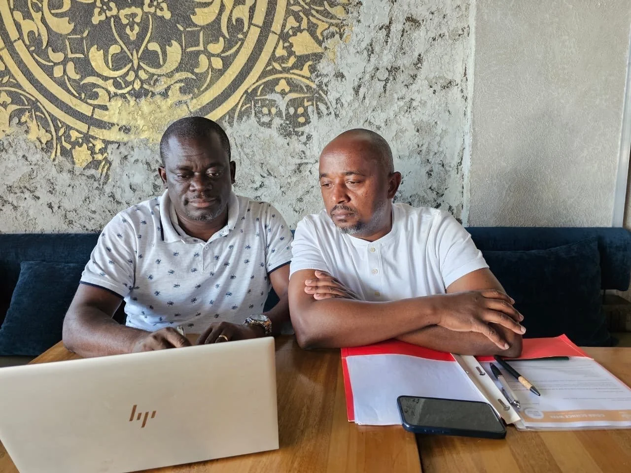 Nasser Yao and Josiah Mutuku review the partnership agreement between 2Blades and ILRI’s Demand-Led Breeding Project
